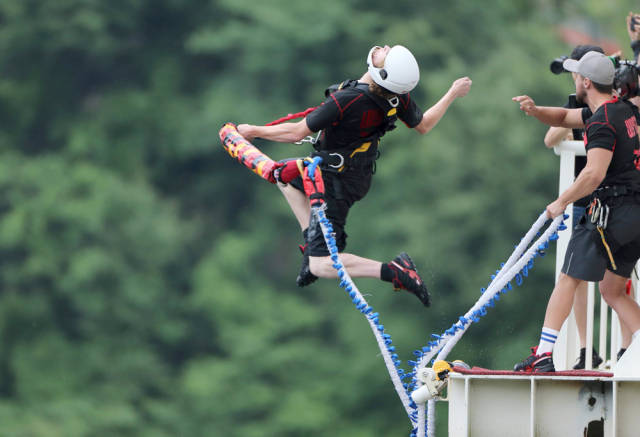 橋梁蹦極:通常在橋梁或懸崖上設(shè)置專門的跳臺來進行蹦極活動。