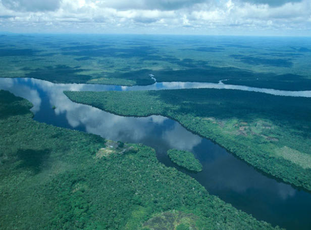 桑加河是剛果河的右岸支流,位于剛果河中游,總長度約1400千米,流域面積18.1萬平方千米,河口年均流量達(dá)到每秒1800立方米。河流發(fā)源自中非共和國西南部,接納右岸最大支流恩戈科河(Ngoko River)后折向東南,流經(jīng)225千米成為喀麥隆與中非共和國、剛果的邊境線,繼續(xù)向西南流經(jīng)362千米后在莫薩卡(Mossaka)東側(cè)注入剛果河。桑加河流經(jīng)的三座相鄰國家公園大部分尚未受到人類活動干擾,其遺產(chǎn)地以潮濕的熱帶雨林生態(tài)系統(tǒng)為特色,是多種動植物的棲息地,包括尼羅河鱷魚和巨型虎魚(Goliath Tigerfish)。